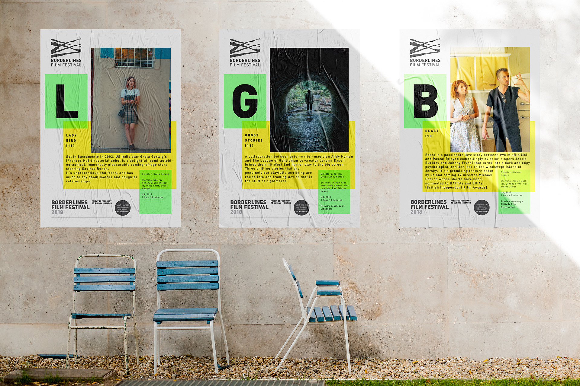 These are examples of various film posters I designed, which could also be distributed as flyers showcasing for the Borderlines Film Festival.